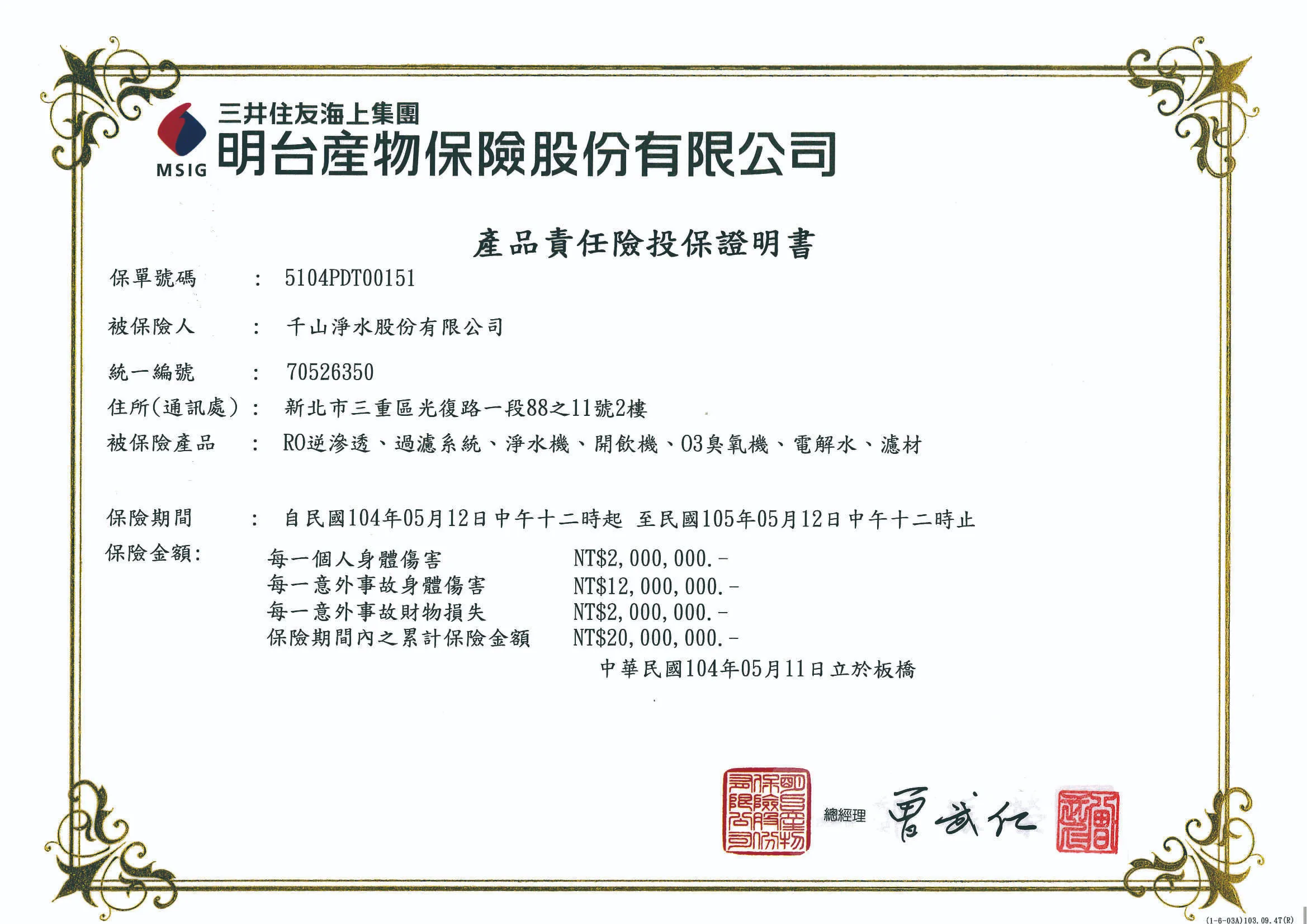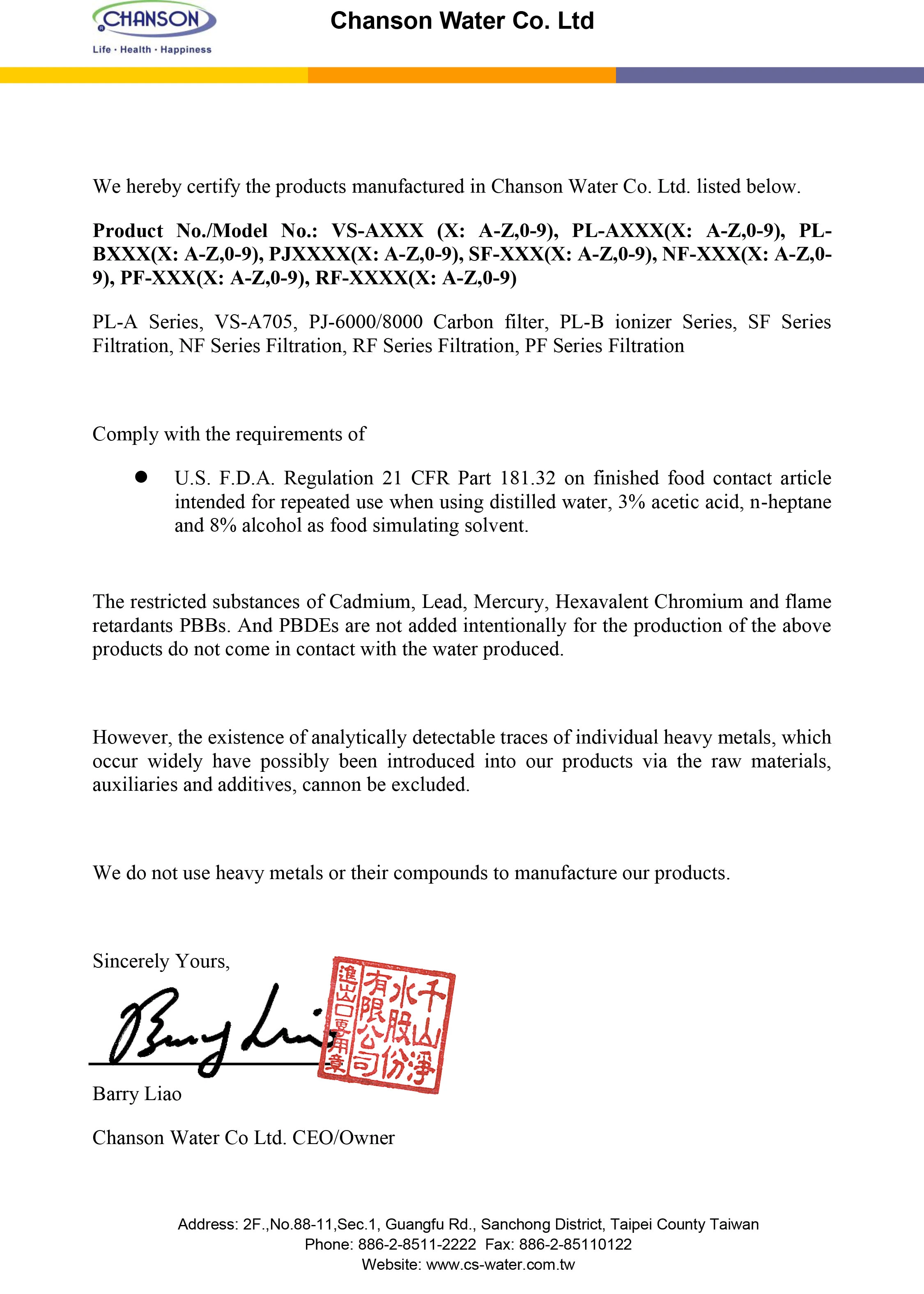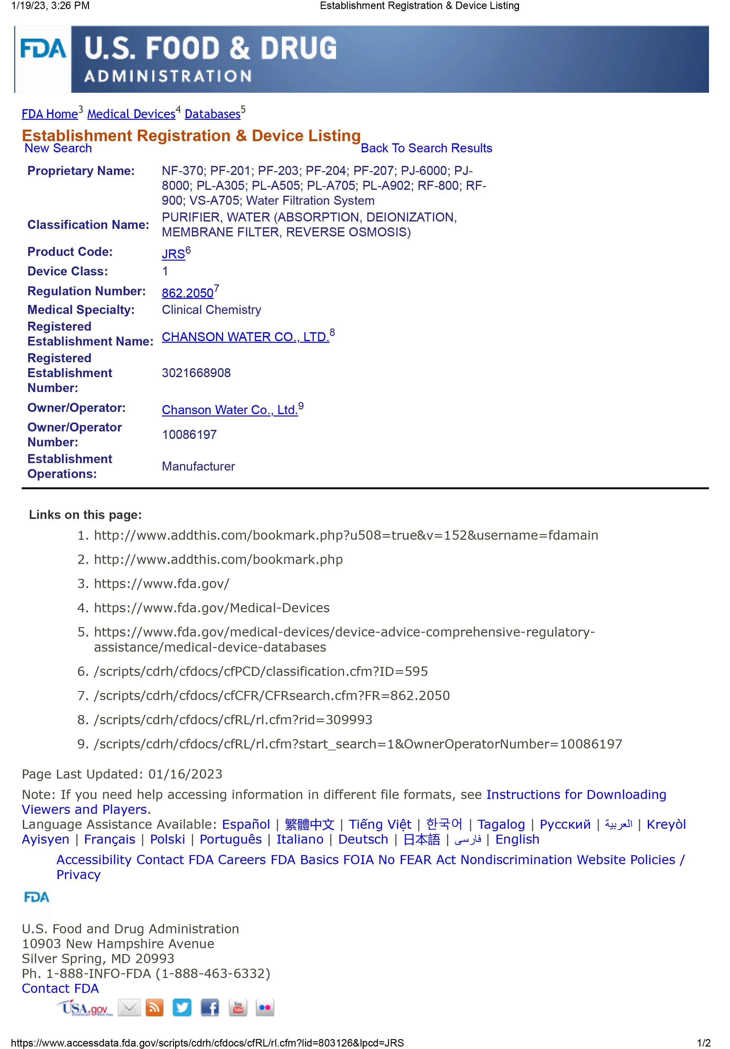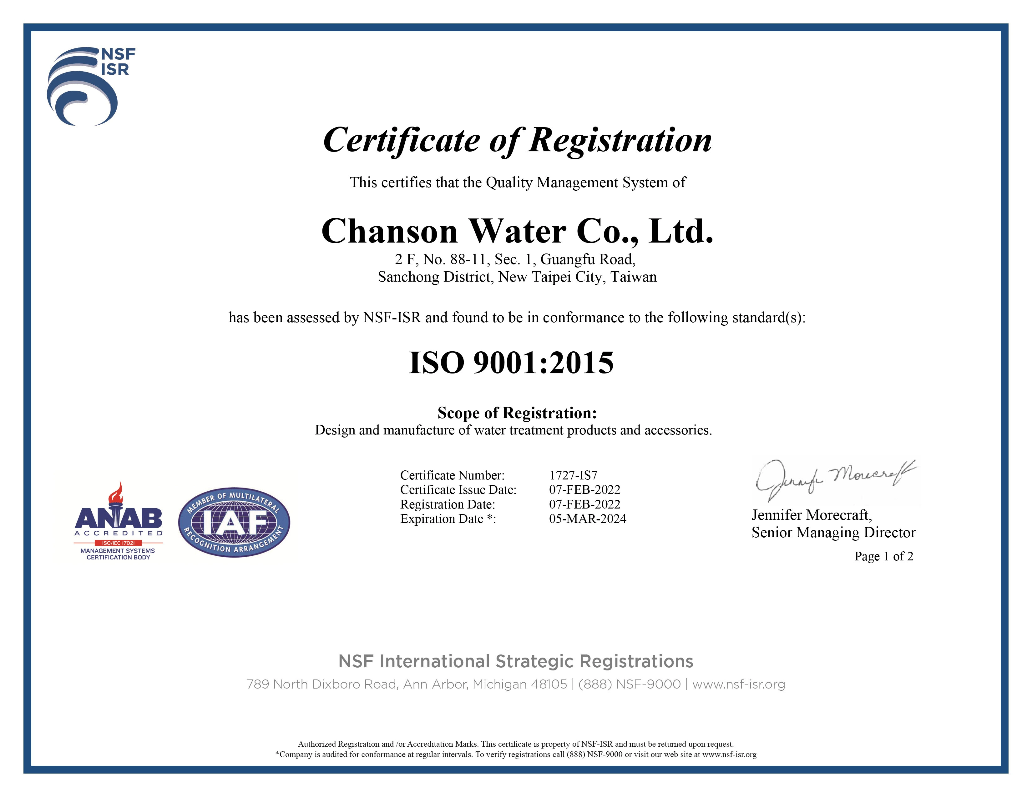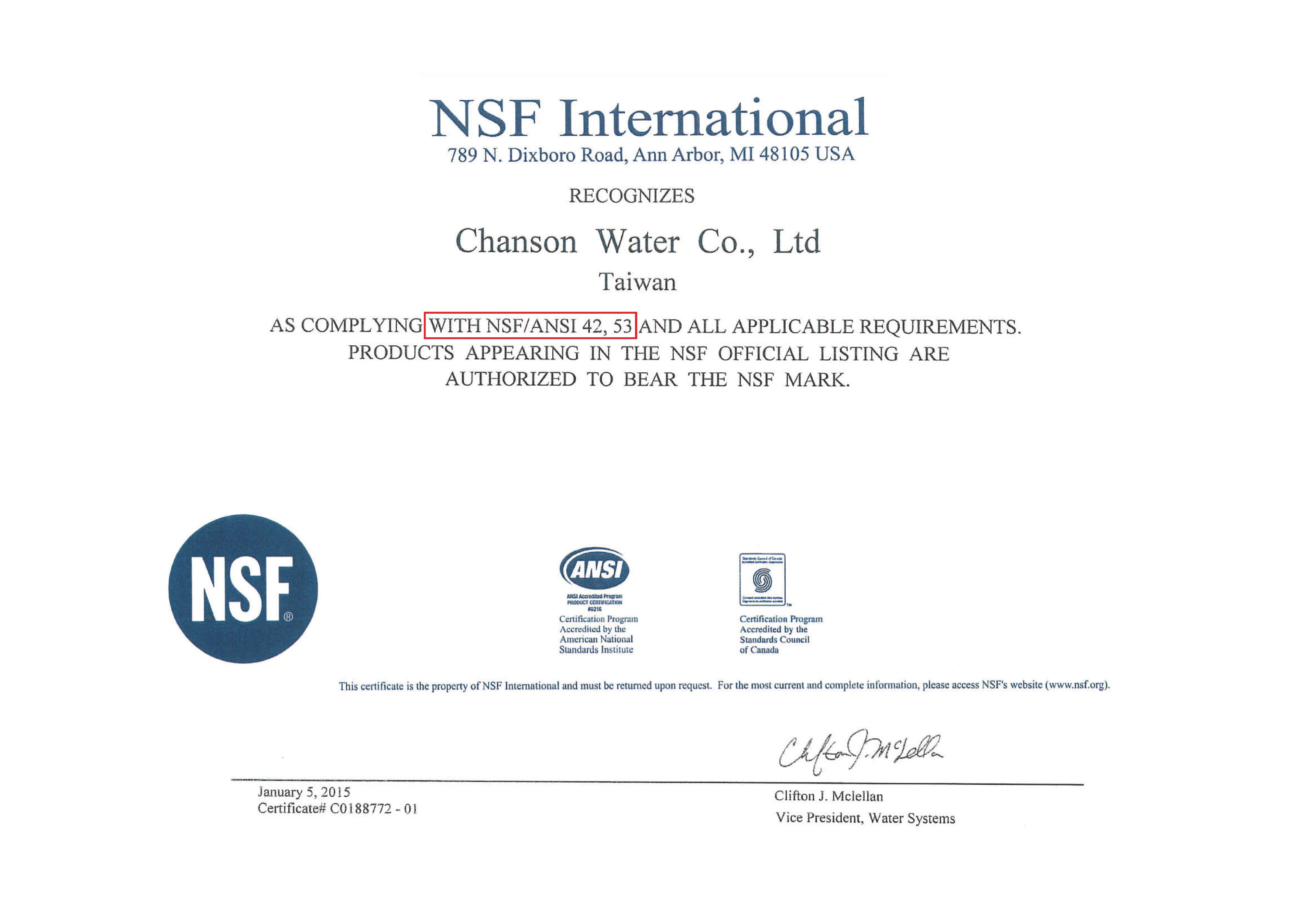 US FDA NSF / ANSI (Gold Seal) Certificate